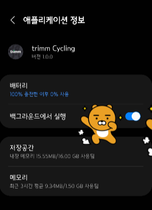 [애플리케이션] - [Trimm Cycling] 에 들어가보니 "백그라운드에서 실행"이라는 옵션이 있었따!!