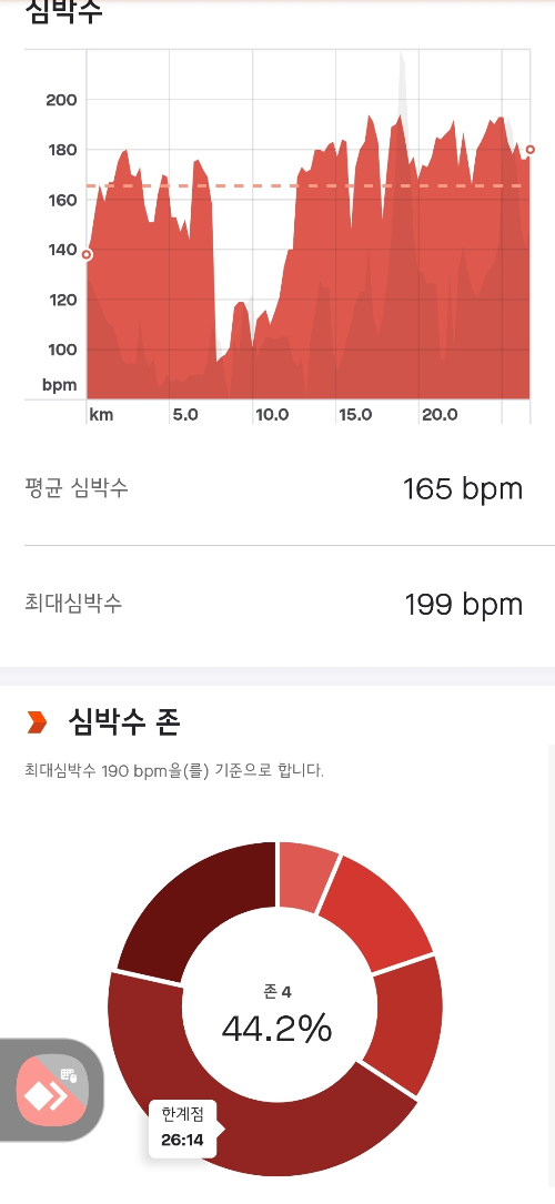 심박수를 보면 거진 숨넘어가기 직전까지 밟았는데도