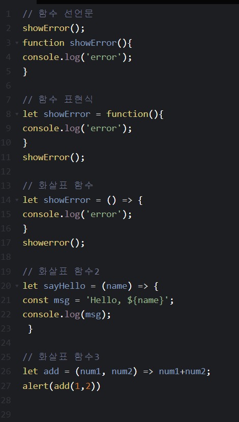 (기초) 자바스크립트 독학 7일차 _ 함수표현식/함수선언문/함수 화살표